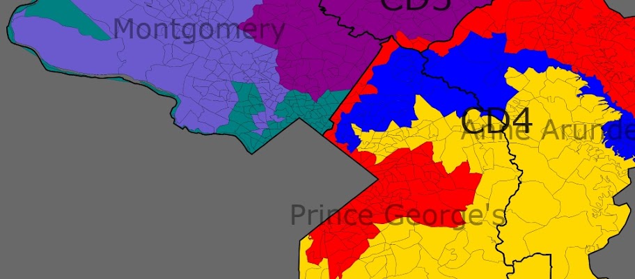 Currently only 3 Maryland Congressmen represent Montgomery and Prince Georges Counties. This plan will make it 6. It will be interesting to see how that changes things. I have a feeling Baltimore, used to being at the center of state politics, won’t like it.